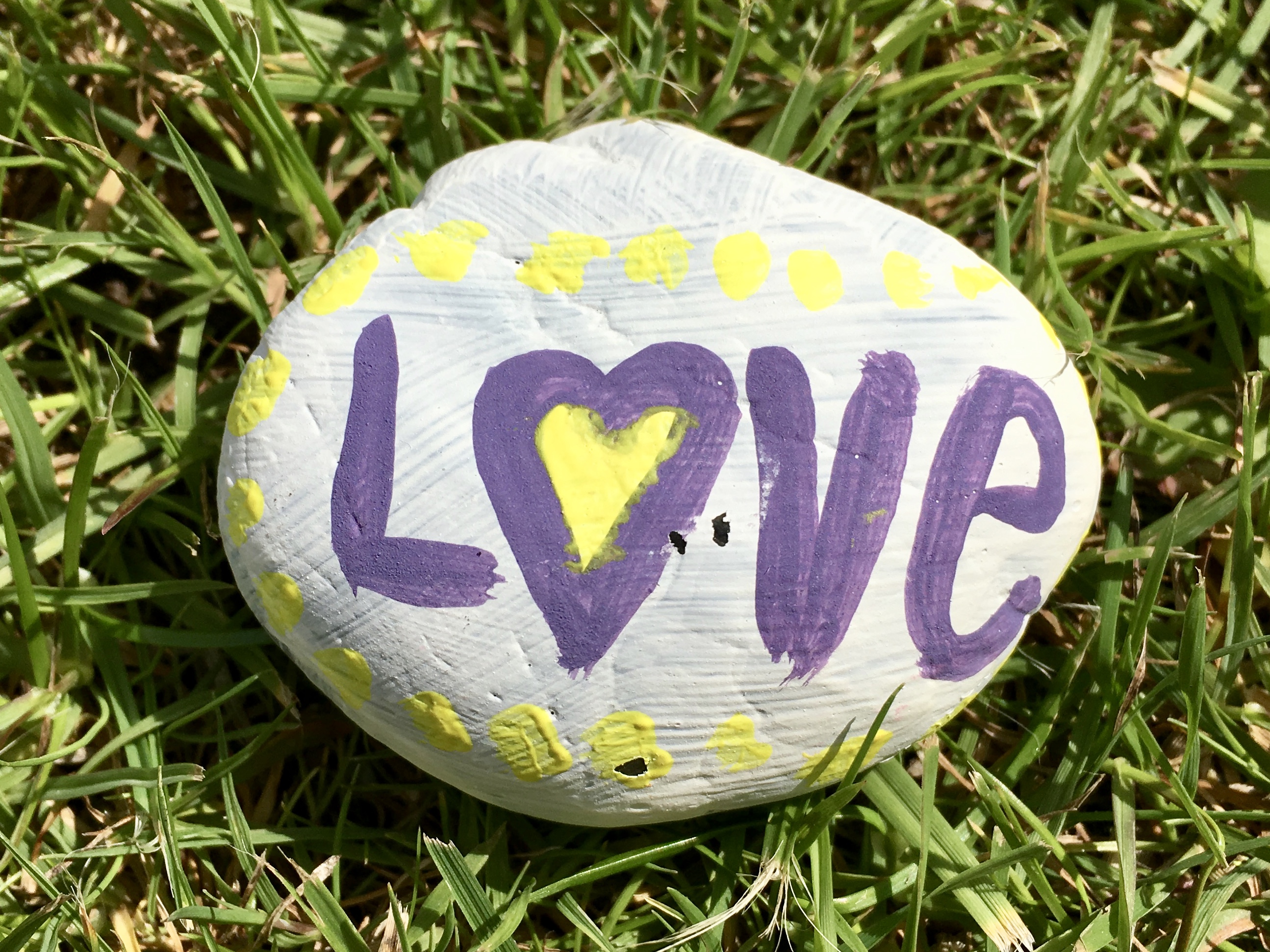 On the smaller rocks, I’m experimenting with single words, or simple designs to make others smile (I hope!).